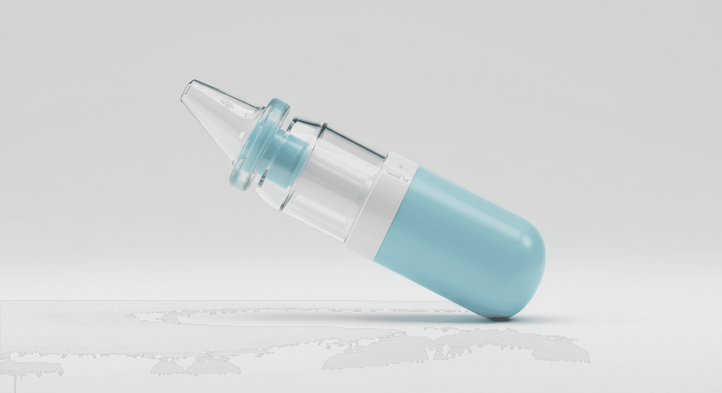 Aspirador nasal ergonómico para bebés, con boquilla transparente y cuerpo compacto. Ideal para mantener la higiene nasal de forma segura y cómoda.