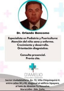 La Pediatría Clínica en el Centro Médico D’Amelio se centra en la evaluación, diagnóstico y tratamiento de las enfermedades y condiciones de salud que afectan a los niños desde su nacimiento hasta la adolescencia. Nuestros pediatras en Maracaibo abordan un amplio rango de necesidades, desde el control de niño sano y vacunas, hasta el manejo de enfermedades infecciosas, alergias, problemas de desarrollo y patologías crónicas. Nos especializamos en crear planes de salud personalizados para cada niño, ofreciendo una atención experta y basada en evidencia para mejorar su bienestar y calidad de vida. Si buscas apoyo pediátrico en el estado Zulia, nuestro equipo está a tu disposición.